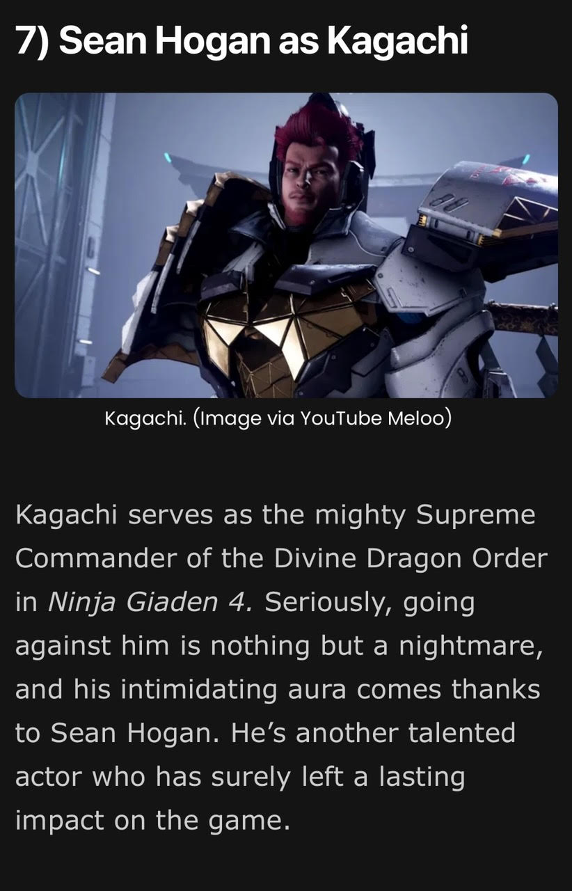 Voice Over by Sean Hogan as KAGACHI in the NINJA GAIDEN 4 PS5 Gaming Video